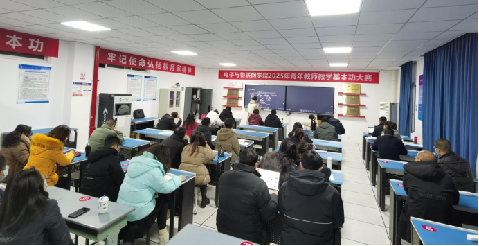2025年1月7日,电子与物联网学院在3303教室举行青年教师教学基本功大赛(以下简称“青教赛”),本次比赛从12月初筹备启动,全院35岁以下的所有青年教师参与,比赛采取教案评比与现场课堂教学演示相结合的形式,整个过程,参赛教师教态大方自然,语言生动清晰,教学目标明确,教学环节和教学活动设计紧凑,教学手段运用得当,充分展现出扎实的教学基本功和自信得体的教学风采。