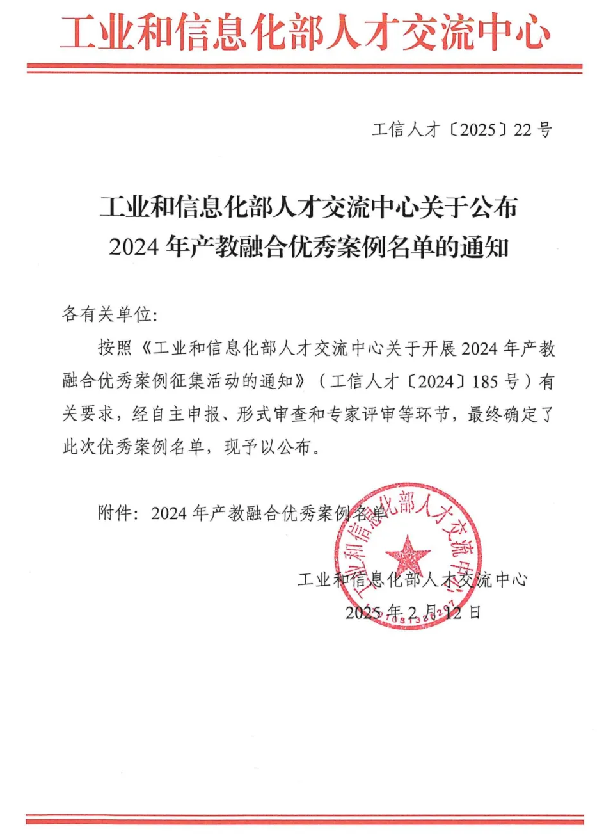 喜报:我院做法获工业和信息化部人才交流中心优秀案例