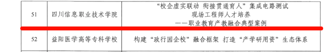 2月12日,工业和信息化部人才交流中心公布了2024年产教融合优秀案例遴选结果,四川省仅三所学校入选,电子与物联网学院的“校企虚实联动,衔接贯通育人”集成电路测试现场工程师人才培养——职业教育产教融合典型案例”获三等优秀案例。