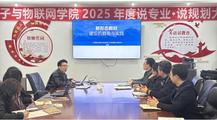 为进一步提升学院教材建设水平,打造高质量的“金教材”,学院于4月2日在3208会议室召开教材建设工作推进会,并邀请到人民邮电出版社相关专家开展讲座,电子与物联网学院院长王坤、副院长李华以及课程资源建设团队全体成员参加会议。