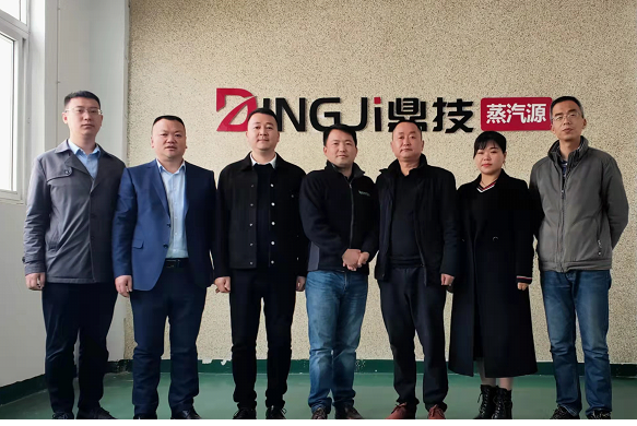 在公司总经理带领下参观考察了全自动智能节能蒸汽机的生产车间、产品加工工艺、技术研发室。双方就技术创新、横向科研项目合作研发、商标的转让、校企合作等方面进行了广泛深入的交流,并达成了初步合作意向。