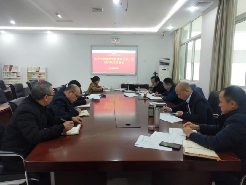 3月2日,电子与物联网学院党总支在3208会议室召开2022年度支委班子民主生活会,学校党委委员、副院长韩鹏和人事处副处长魏康同志到会指导,党总支书记张德忠同志、副书记贾正松同志、组织委员罗利琴同志、纪检委员朱清溢同志、宣传委员蒋小辉同志参加了会议,物联网党支部书记魏运全、电信党支部书记胡德清、物联网党支部纪检委员谢伟同志列席会议。