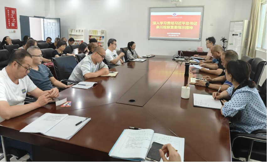 9月21日,我院在3208会议室开展深入学习贯彻习近平总书记来川视察重要指示精神,电子与物联网学院党总支书记、院长、副院长及全体教职工参加会议。