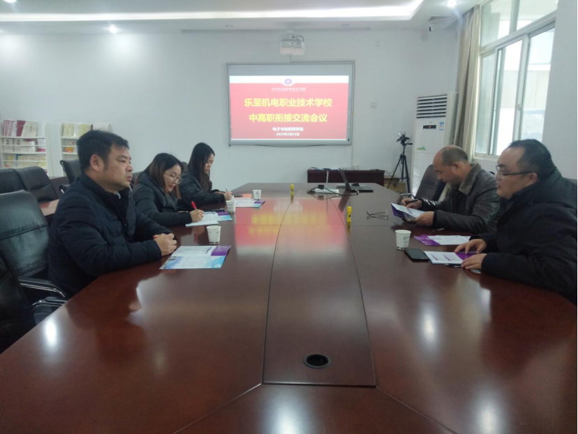 交流会上,贾正松院长对孙超副校长一行表示热烈欢迎,孙校长介绍了乐至机电职业技术学校学生规模、课程开设、教学实施以及技能培养等情况;贾院长介绍了电子与物联网学院专业开设、招生规模、培训目标、学生实习、学生就业前景等情况。最后,双方就中高职衔接、单招考试、3+2培养、专业建设等方面进行了深入交流。