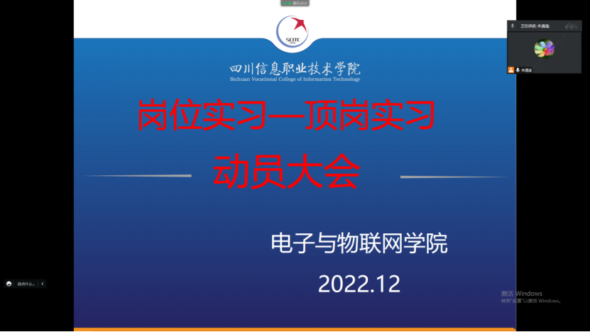 12月23日,电子与物联网学院线上召开2020级顶岗实习动员会,2020级全体毕业生、辅导员及教研室主任参加会议。会上,电子与物联网学院副院长解读了国家及学校相关实习管理规定,并就实习的必要性、实习企业及岗位安排、实习时间安排、实习资料、实习管理及实习安全等方面进行了安排。并要求全体学生遵守校企相关规定,积极投入到实习中去,尽快掌握岗位相关技能,为充分就业打下扎实基础。