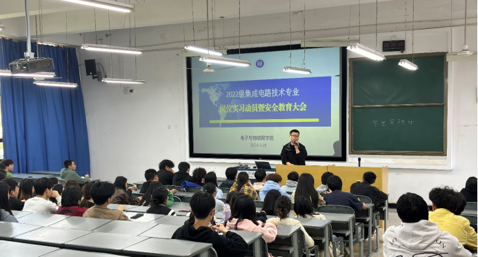 3月27日中午,电子与物联网学院在电子楼3208会议室召开2024年春季学期集成电路技术专业岗位实习部署会议。该院负责人、带队教师、教研室主任、2022级辅导员及导师参加会议。会上,该院负责人对实习时间调整情况进行了说明,对成都华微考察情况进行了汇报,对岗位实习动员暨安全教育等后续工作进行了安排部署,明确了带队教师、辅导员的职责。