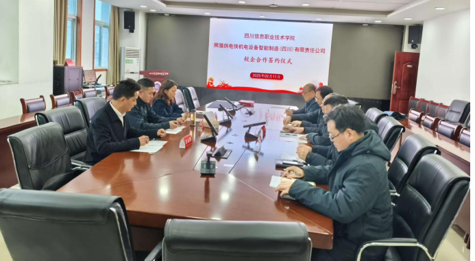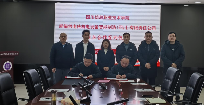 为促进产教深度融合,2月11日,我校与熊猫供电侠机电设备智能制造有限责任公司举行校企合作签约仪式。学院党委委员、副院长吕强,企业董事长罗韬等一行,电子与物联网学院负责人等参加了此次签约仪式。
