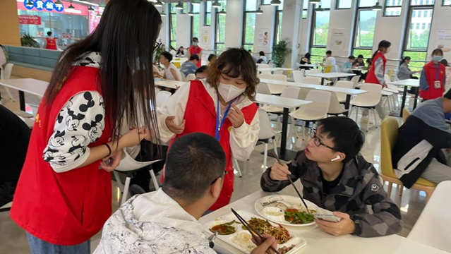 为引导广大学生养成珍惜粮食,反对浪费的优良习惯,在全校持续营造浪费可耻、节约为荣的氛围。4月8日,我院在雪峰校区食堂开展了《汗滴四月携香近,光盘一刻亦作光》光盘行动宣传活动,青年志愿者协会电子与物联网学院分队全体成员参与。