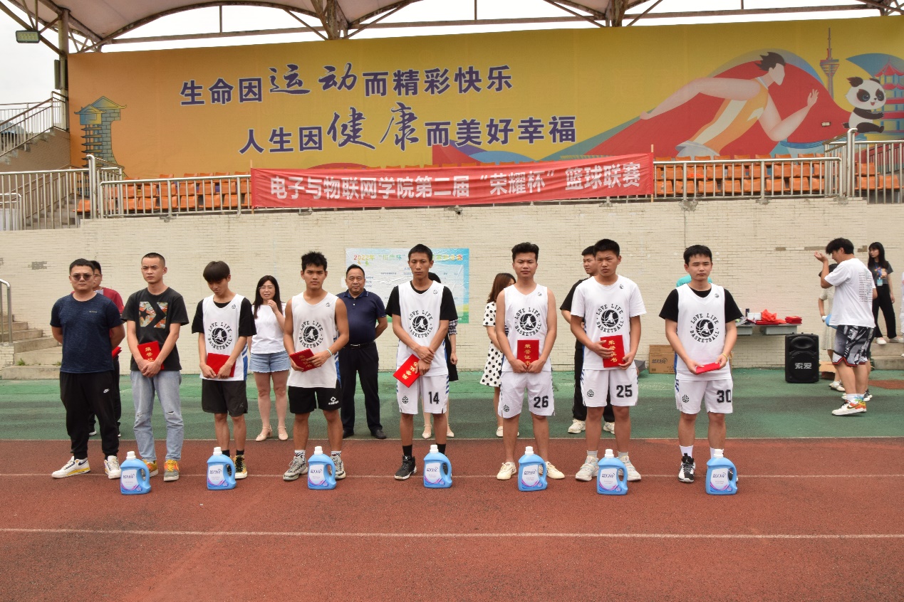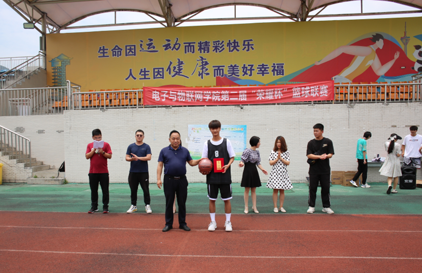 为增强学生体质和班级凝聚力、向心力,电子与物联网学院举办了第二届“荣耀杯”篮球联赛,并于6月2日举行了闭幕式暨颁奖典礼。院党总支书记张德忠、全体辅导员出席,各班级运动员参加。