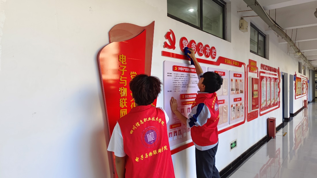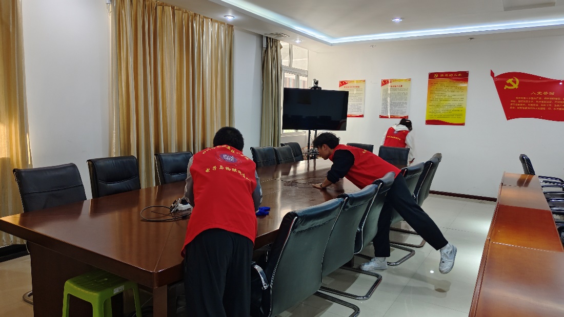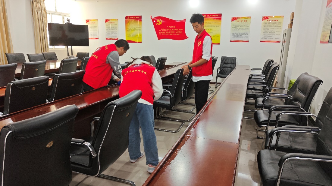 活动中,志愿者统一身穿红马甲,手持扫把、拖把、抹布等清洁工具,有序对电子楼的教室、走廊、楼梯、会议室、文化墙以及公示栏等公共场所进行了全面的清洁。