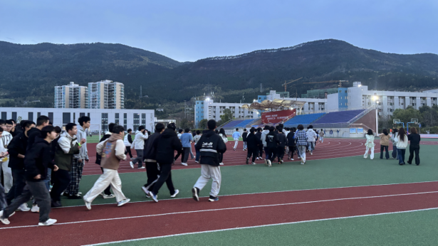 随着发令信号响起,夜跑正式拉开帷幕。身着各色服饰、佩戴荧光装备的学生们结伴出发,宛如一条流光溢彩的星河,穿梭在校园的跑道上。奔跑途中,大家相互鼓励、并肩前行,脚步声、呐喊声、欢笑声交织在一起,驱散了夜晚的静谧。赛道旁,体育部成员们坚守岗位,提供补给与指引,用暖心服务为活动保驾护航,让每一位参与者都能安心奔跑、尽情享受运动的快乐。