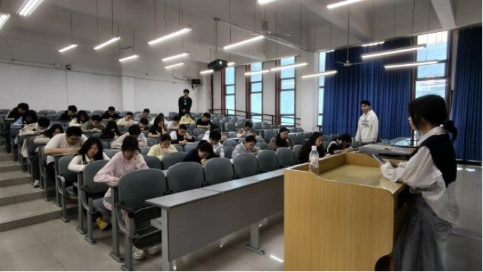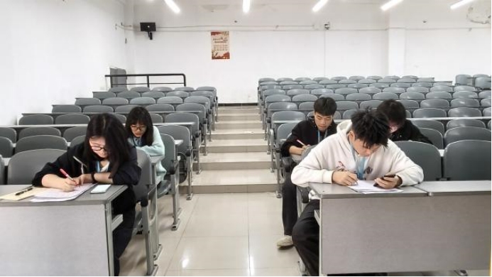 比赛现场秩序井然,氛围紧张而热烈。初赛环节,所有参赛选手同时作答,内容涵盖汉字注音与清明主题字词听写。主持人清晰播报读音与释义,选手们凝神静气、伏案书写,在纸上认真落下每一笔。同时为保障赛事公平公正,学工作人员全程在岗监督,赛前逐一核对参赛人员信息,强调“严禁使用手机等辅助工具”的纪律要求,并做好巡回巡查工作,仔细排查作弊行为,及时提醒字迹潦草的选手规范书写,确保答题清晰可辨。赛后引导选手按顺序有序交卷,全程无喧哗、无拖沓,充分展现了我院学子良好的精神风貌与工作人员的严谨负责。