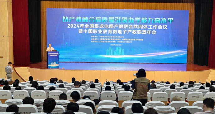 2024年10月11—12日“2024年全国集成电路产教融合共同体工作会议暨中国职业教育微电子产教联盟年会”在江苏无锡举行,来自全国集成电路产教融合共同体各成员单位、中国职业教育微电子产教联盟各成员单位、全国各职业院校领导,专业负责人,专任教师,集成电路及相关产业的行业企业代表等300余人参会。