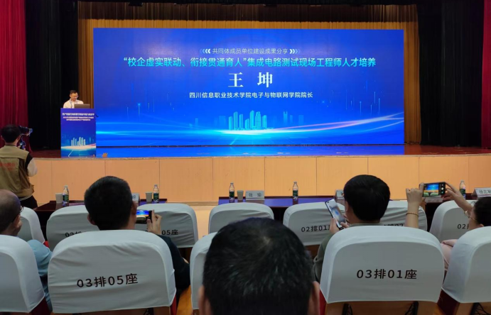 本次会议紧密围绕“以产教融合高质量引领办学能力高水平”这一主题,深入探讨如何将产教融合理念具体落实到职业教育“金专”“金课”“金师”“金地”和“金教材”等“五金”建设中,进一步推动职业教育与集成电路产业的协同发展,进一步推动专业建设水平和服务发展能力的提升。会议上,四川信息职业技术学院电子与物联网学院院长王坤做了《“校企虚实联动,衔接贯通育人”集成电路测试现场工程师人才培养》典型案例分享。