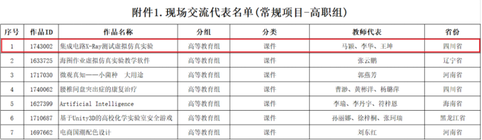 该参赛课件是我院深度产教融合的实践成果,通过虚拟仿真实训,教师和学生可以更快速地接触到集成电路产品、工艺、流程的更新迭代,从而更好地解决职业教育教学改革与产业升级脱节等问题,实现学习内容与就业要求“零距离”无缝对接。