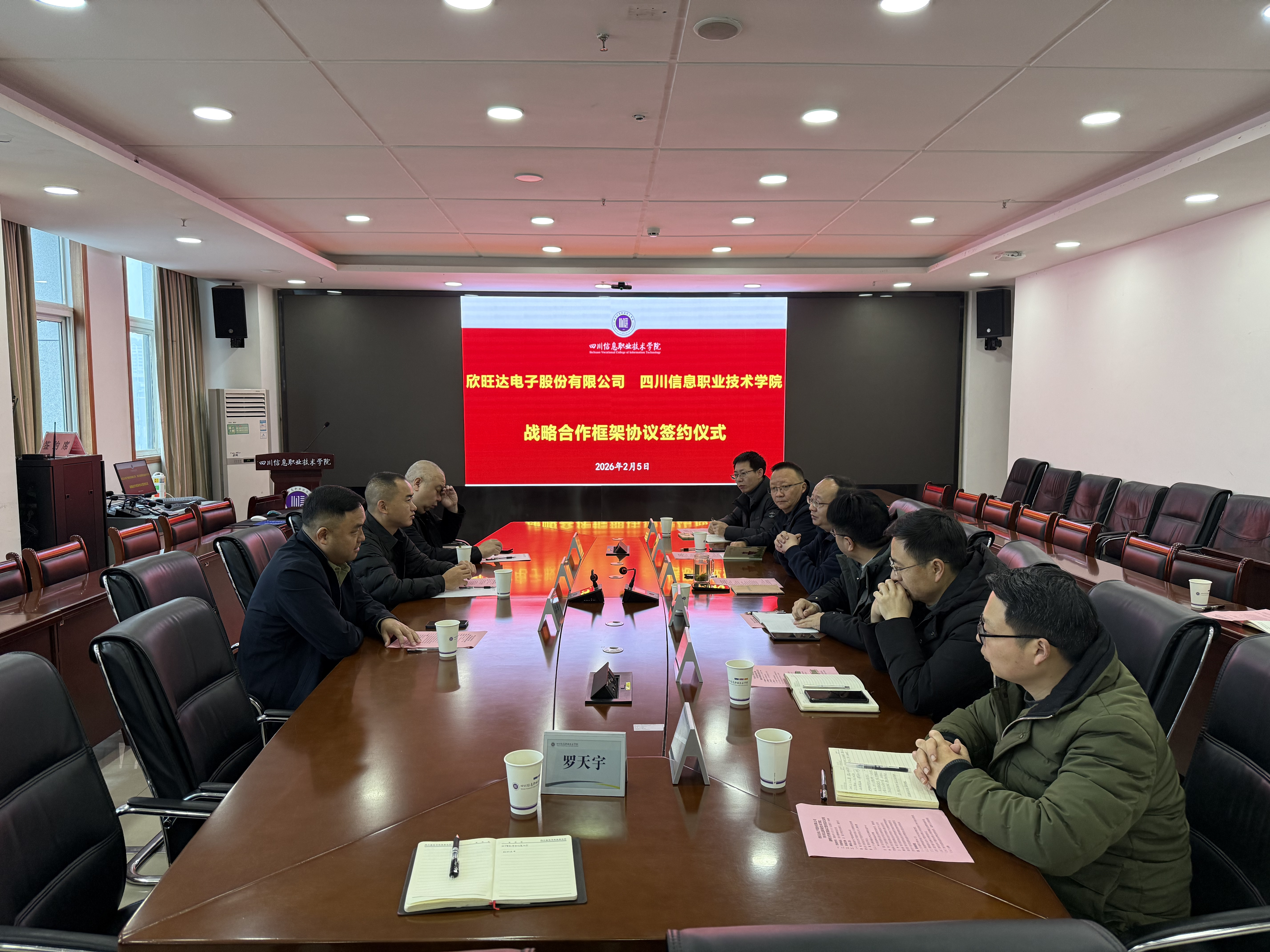 2月5日,欣旺达电子股份有限公司招聘副总经理陈挺一行来院开展校企合作洽谈。学院党委委员、副院长吕强热情接待,并在综合楼0903会议室举行战略合作框架协议签约仪式。广元经济技术开发区招商信息中心、招生就业处、电子与物联网学院、现代制造学院、智能控制学院相关业务负责人参加签约洽谈会。