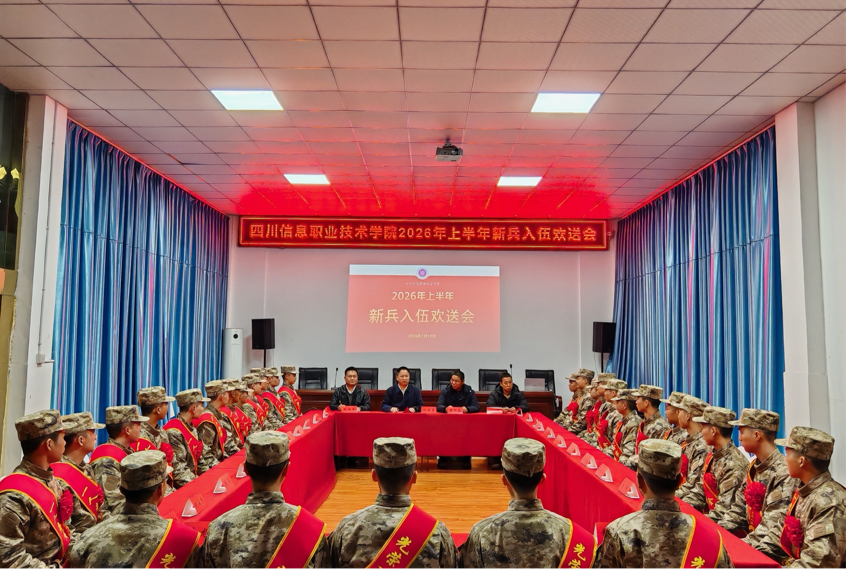 3月18日,学院2026年上半年新兵入伍欢送会在利州区役前教育基地举行。学院党委书记郑学奇,副院长黄军友出席会议,党委学生工作部、党政办公室相关负责人及29名2026年春季入伍新兵参加会议。