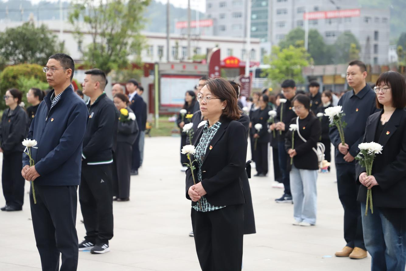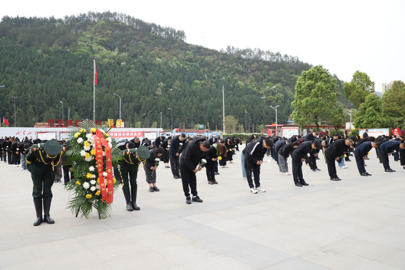 全体师生缓步绕行,瞻仰烈士纪念碑。在烈士墓区,师生们擦拭墓碑、敬读碑文,向烈士们献上鲜花并行鞠躬礼,深情缅怀革命先烈。