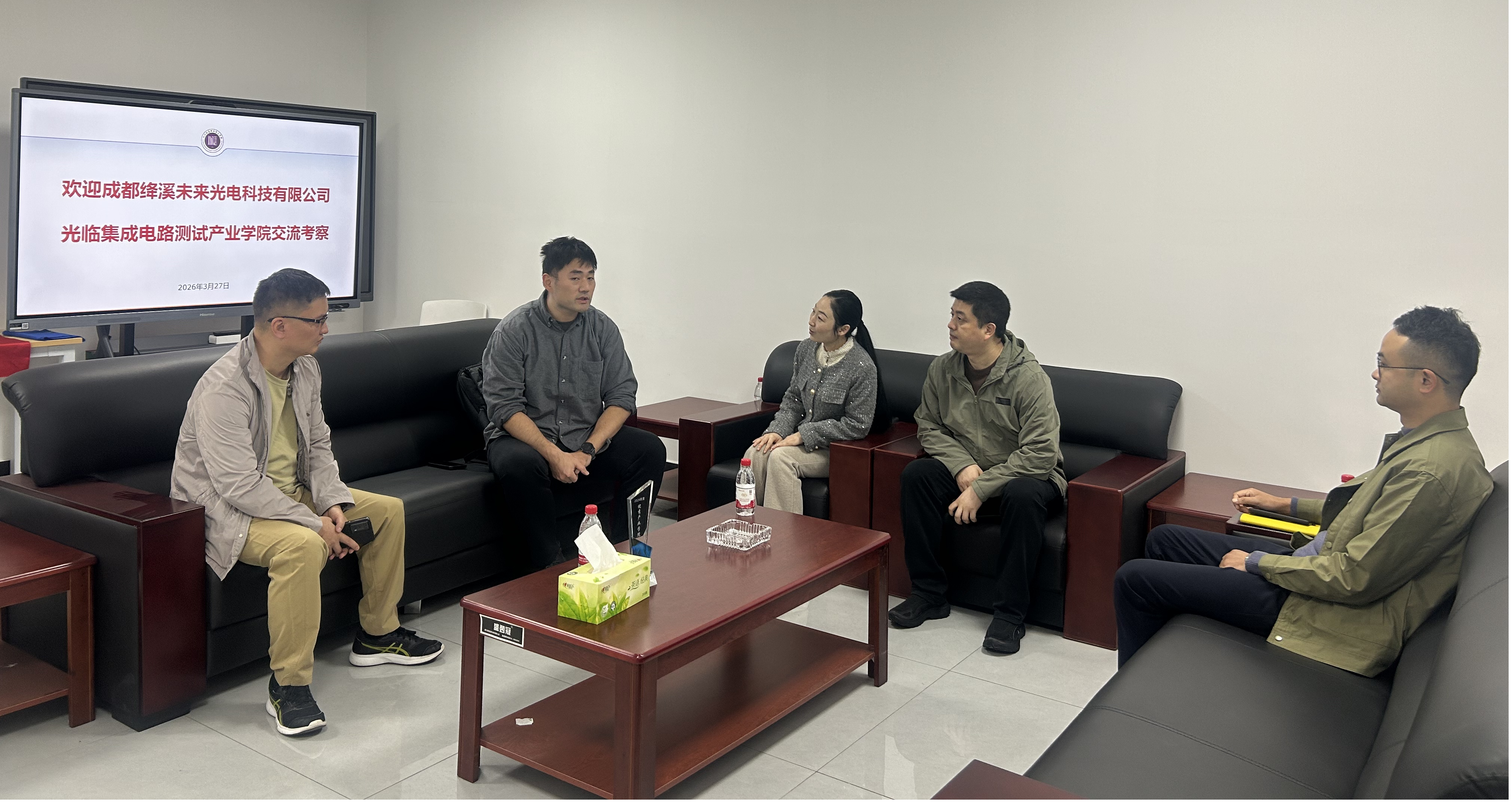 3月27日,成都绛溪未来光电科技有限公司中试运营负责人王宇一行到我院集成电路测试产业学院,开展交流考察。