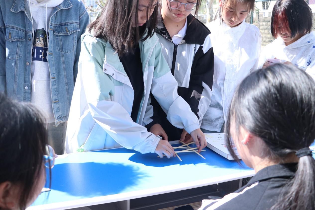 本次活动紧扣蜀道文化核心设计四大趣味闯关环节,将知识性与趣味性深度融合。第一关“蜀道密码”聚焦蜀道历史、地理、诗词知识,参赛队员通力协作答题,在脑力比拼中夯实蜀道文化基础;第二关“栈道工坊”设置实践挑战,队员需使用指定数量的一次性筷子,搭建出符合长度要求的栈道桥并完成承重测试;第三关“剑门飞渡”以纸槽接力运输乒乓球为形式,要求队员配合无间、步调一致;第四关“诗传古道”采用动作比划竞猜的方式,让队员在互动游戏中竞猜蜀道相关诗词名句,沉浸式感受蜀道诗词的文化底蕴与艺术魅力。