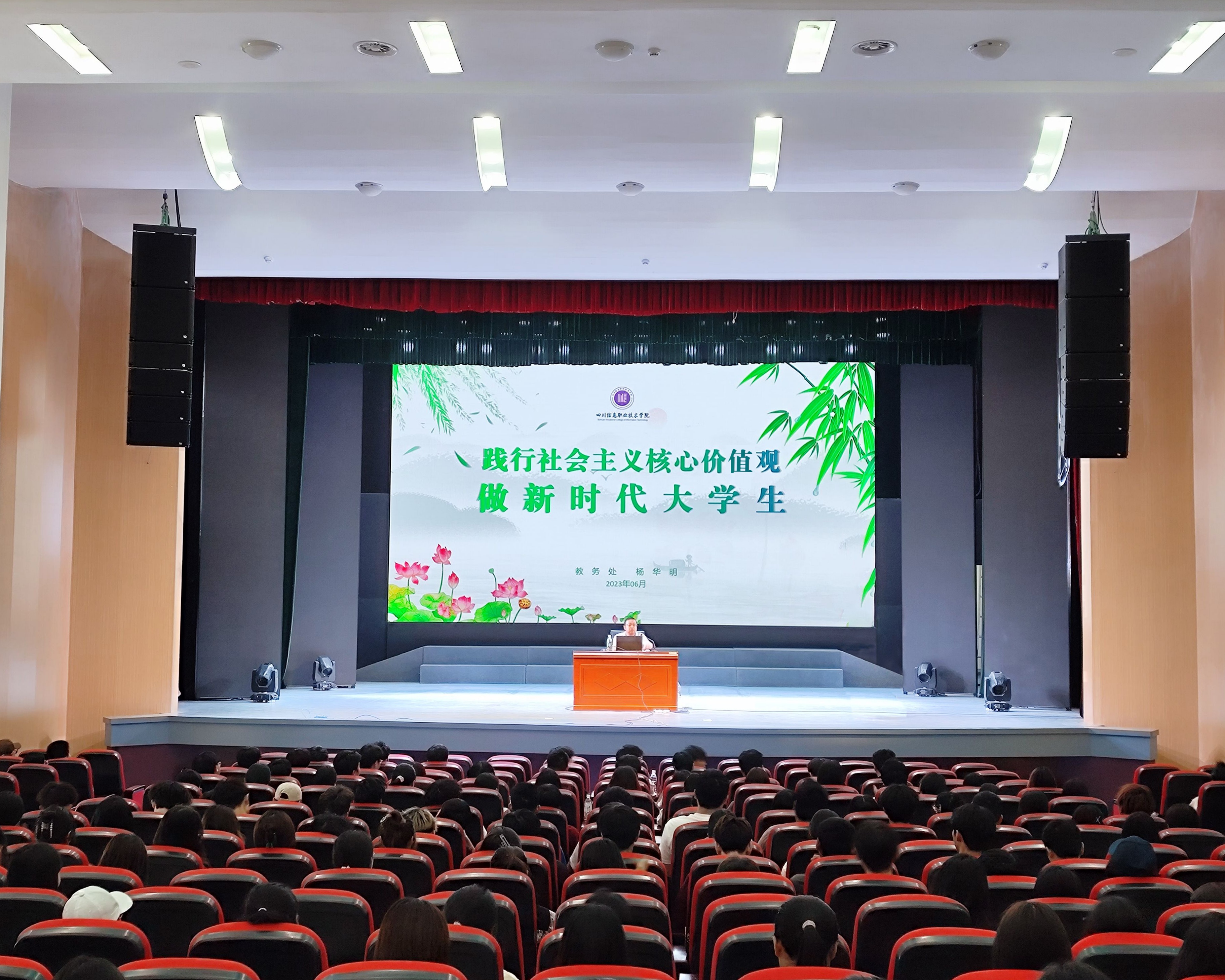 为深入贯彻落实党的二十大精神,切实加强新时代校园廉洁文化建设。6月9日下午,数字经济学院在东坝校区礼堂举办《践行社会主义核心价值观做新时代大学生》为主题的第二期“经”彩论坛。本次讲座由学校纪委委员、校长助理、教务处处长杨华明主讲,学院党总支书记张健华主持。全体22级学生参加讲座。